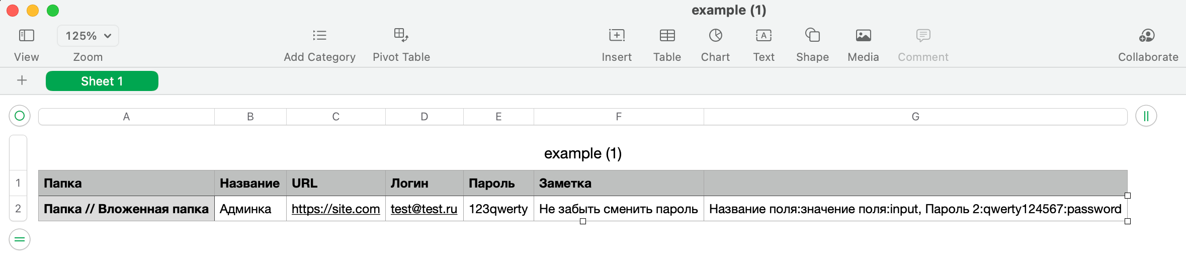 • Папка — место хранения парольной записи во внутренней иерархии папок парольного менеджера (вложенность папок указывается через символ //);